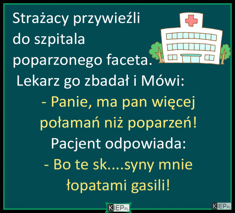 Strażacy przywieźli do poszkodowanego do szpitala. Lekarz go zbadał i Mówi...