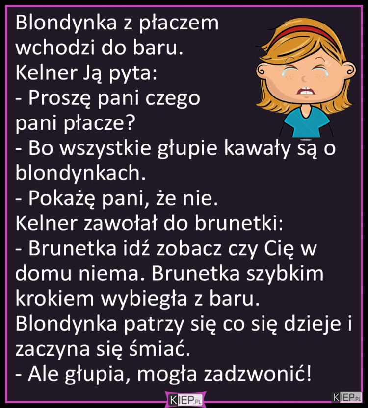 Blondynka z płaczem wchodzi do baru...